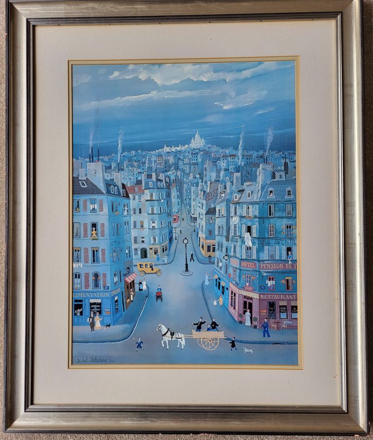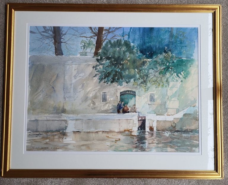 'Painting Portraits By The Seine', Gilt framed watercolour, signed, size 52x71cm