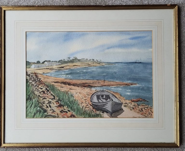 Framed watercolour, Coastal Landscape (probably Sark), signed, size 45x37cm